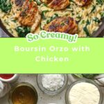 This creamy and flavorful Boursin Orzo with Chicken recipe combines tender chicken breasts with cheesy Boursin Garlic & Fine Herbs and fresh spinach, all simmered together with orzo pasta in a rich chicken broth and cream sauce. Ready in just 30 minutes, it’s a comforting one-pan meal perfect for a busy weeknight dinner.