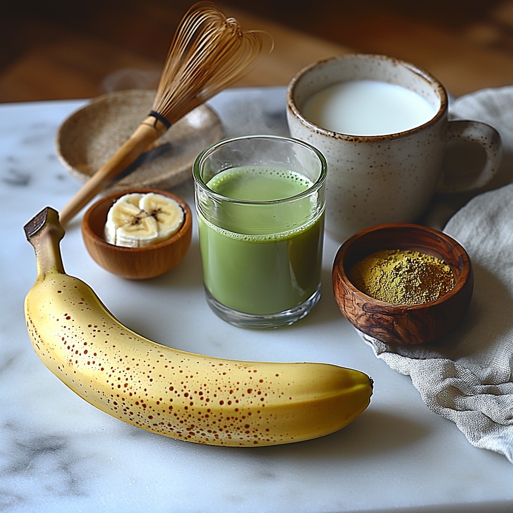 Getting started with the Creamy Easy Banana Matcha Latte for a Refreshing Boost Recipe is all about simplicity and quality. The ingredients are few but thoughtfully chosen to deliver the perfect mix of flavor, texture, and that beautiful green color that matcha lovers adore.