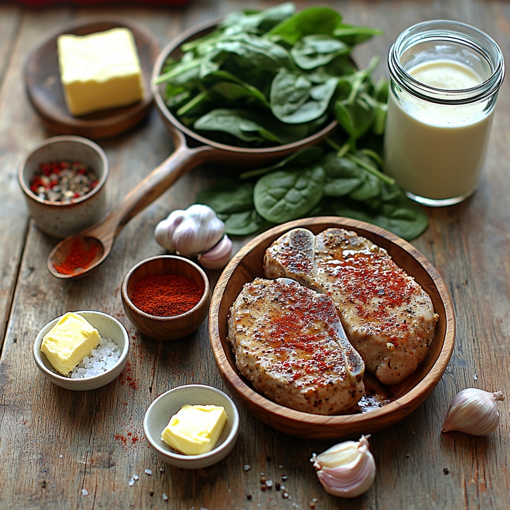 These ingredients are delightfully simple, yet each one plays a crucial role in building layers of flavor and texture. From the smoky paprika on the pork to the fresh spinach brightening up the sauce, every item contributes to making this dish a standout cozy dinner.