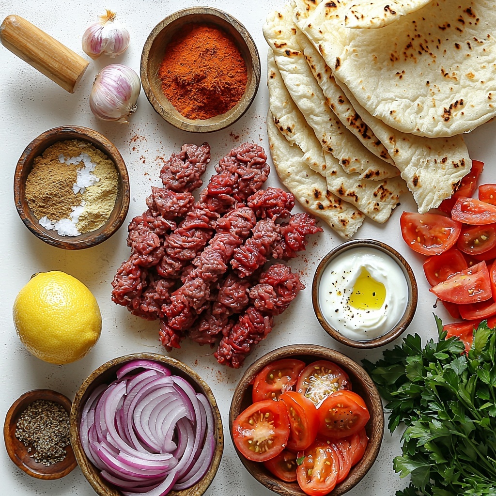 For a fun twist, serve the kebabs deconstructed on a large platter with separate bowls of sumac onions, garlic yogurt sauce, tomatoes, and herbs, letting everyone assemble their own wraps. You can also skewer the meat strips after baking for a rustic, party-style presentation or use mini pita rounds for bite-sized finger foods perfect for entertaining.