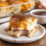 If you want to prepare these sliders well in advance, assemble them fully but do not bake. Wrap the entire baking dish tightly with plastic wrap and aluminum foil and freeze. When you’re ready to eat, thaw overnight in the fridge and then bake as directed. They can be frozen for up to 1 month without losing flavor or texture.