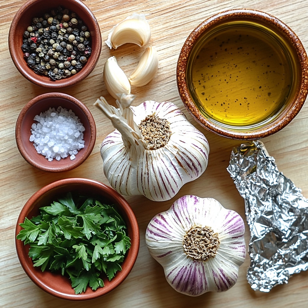 - Prepare the Garlic Bulbs: Slice the top off each garlic bulb to expose the cloves. Drizzle with olive oil and sprinkle salt and pepper to enhance the flavor.