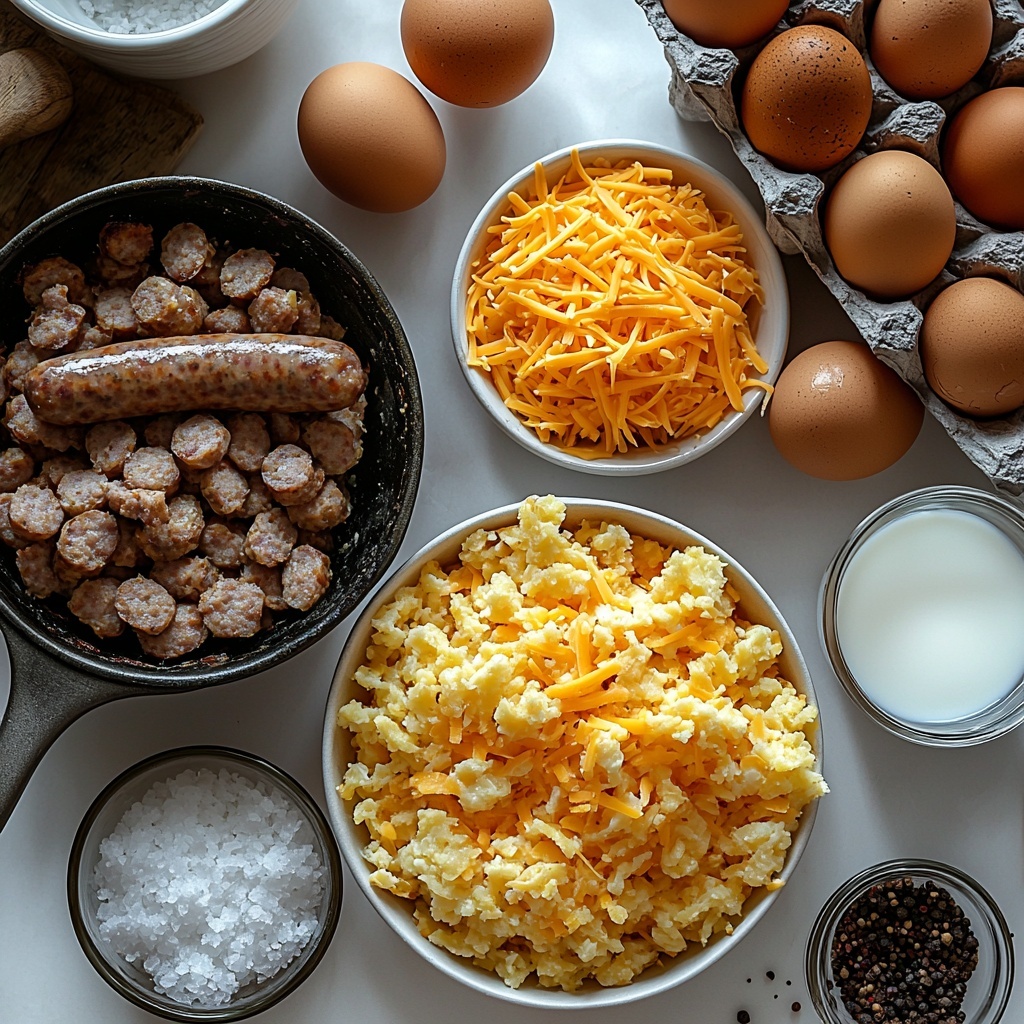 - 1 pound breakfast sausage: Provides a savory, seasoned protein base that gives the casserole its rich flavor.