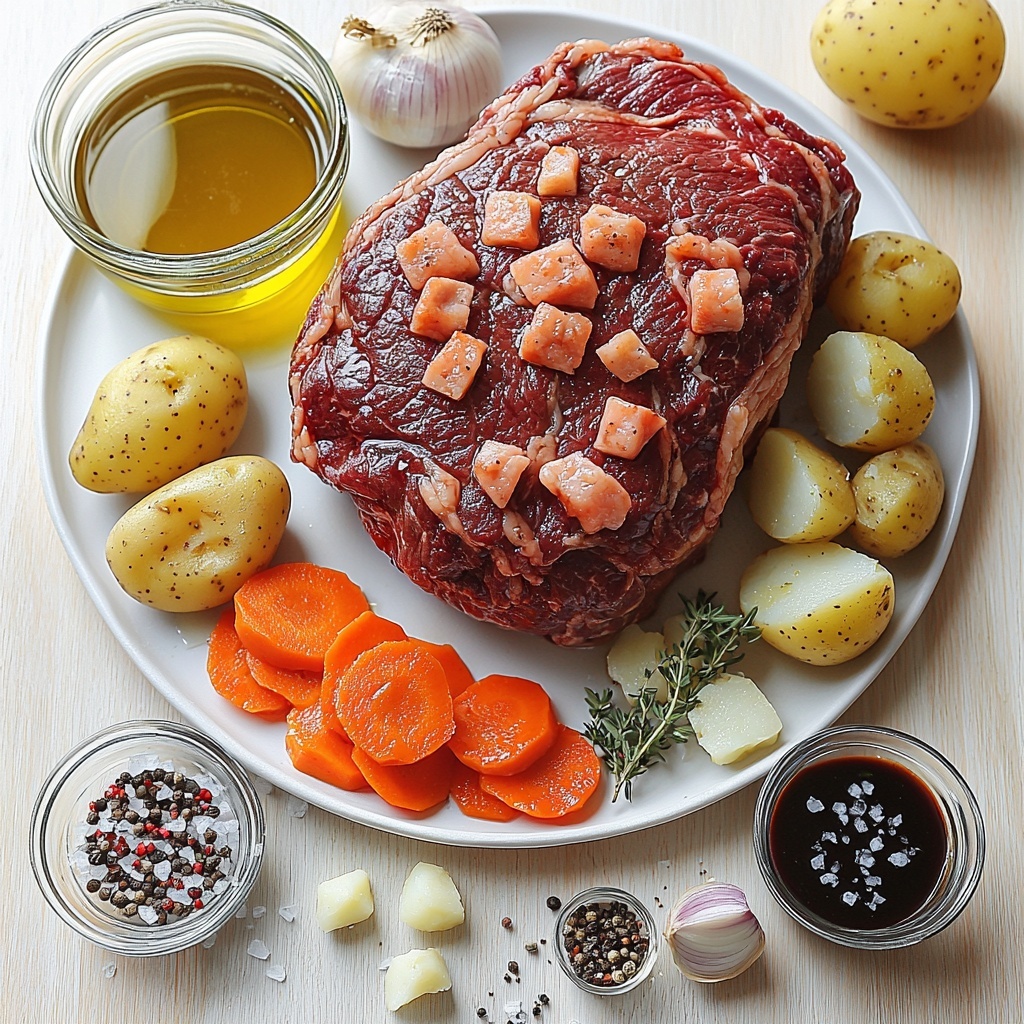 These ingredients are straightforward, wholesome, and timeless, each playing a crucial role in building the depth of flavor, texture, and warmth this pot roast is known for. The combination of fresh vegetables and aromatic spices ensures every bite is satisfying and nourishing.